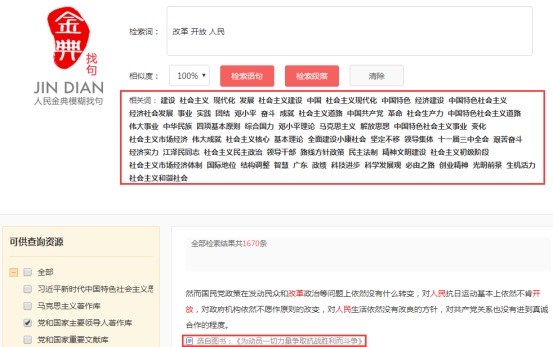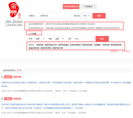 1、金典语义:用于对马列著作及党和国家主要领导人著作的知识点按语义精准检索。