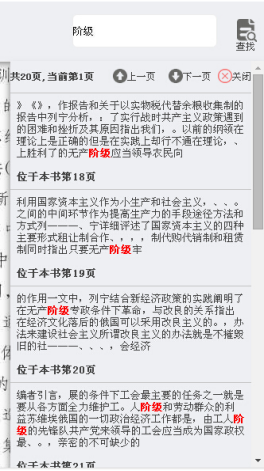 查找功能对当前图书的内容进行查找,点击其中某一条搜索结果即可跳转至该页。