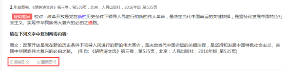 在校对结果中,可以通过点击复制引文或翻阅原书实现正确引文的复制和原书查看。