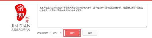 将准备引用的文字输入对话框内,点击“校对”按钮即可自动列出比对目标内容,并显示引文与原文是否一致。