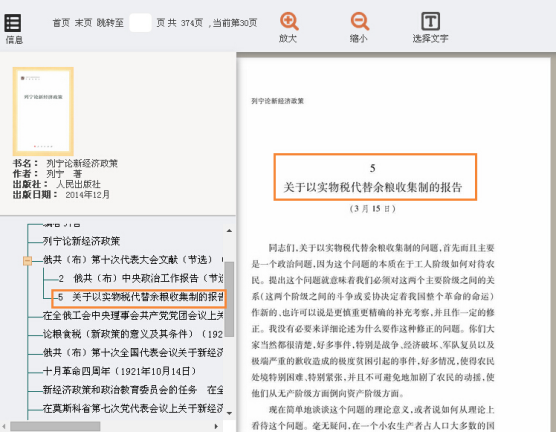 按钮查看图书的基本信息及目录,点击任意目录跳转至对应正文页。(下页图)