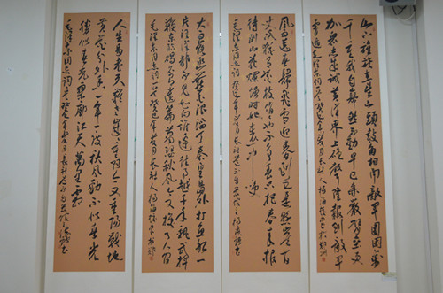 本次书画展展出作品百余幅,主要由我院艺术教育中心和电子信息工程系教师创作提供,学院的书画爱好者也为展览提供了部分作品。这些作品是我院师生在繁忙的工作学习之余进行的创作成果,学院党委书记杨海蛟也以毛泽东诗词为内容书写了四条屏书法作品参加了此次汇报展。