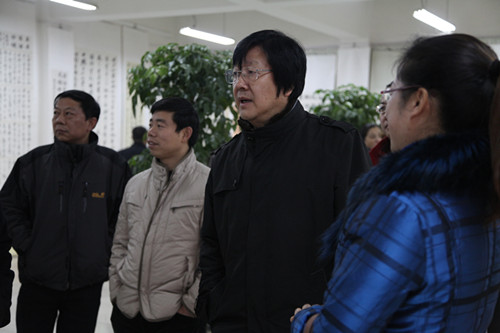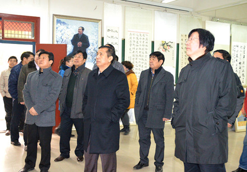 由艺术教育中心主办的“纪念毛泽东诞辰120周年师生书画教学汇报展”于12月25日在我院艺术展厅开展。学院党委书记杨海蛟,院长姬广闻,副书记、副院长刘源,院长助理王文峰、窦瑞木等院领导,相关部门负责人、教职工以及书画协会学生代表在25日上午共同参观了首展。