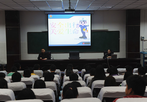 (通讯员 王坤根据河南省综治办《关于深入开展平安河南建设宣传月活动的通知》和省教育厅的相关通知精神,为进一步加大平安建设宣传工作力度,3月17日下午,学院党委宣传部、保卫处邀请中牟县交警大队李娟警官4104报告厅作“平安交通伴我行”讲座。讲座由保卫处处长王铁俊主持。