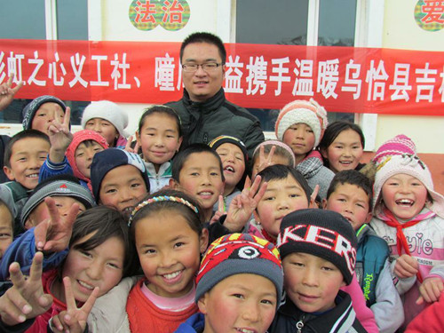 每个冬天,对克州边远乡村里的孩子们来说,都是一个难熬的季节,寒冷的冬天给贫困儿童带来的影响主要集中在生活、学习、卫生健康及心理方面。克州贫困地区的儿童缺乏充足的御寒物品,如棉衣、手套、棉鞋等,加之儿童缺乏自我保护意识,许多儿童在冬季生冻疮、手足皲裂的情况比较普遍。通过不懈努力,积极与新疆各大公益组织达成合作,通过收集贫困学校信息资料,志愿者走访调查、新媒体运用等方式,为克州15所乡村小学学生争取了3550件棉衣、棉鞋。让温暖留存,让希望播种。2013年12月,壹基金爱心大使来到克州,与西部计划志愿者一起参与克州212个温暖包的发放工作。2014年3月,张旭参加壹基金温暖包发放工作经验分享会,克州作为全疆唯一一个由西部计划志愿者全程参与温暖包发放工作的地州,他代表克州向壹基金项目总监、各地州公益组织介绍克州壹基金温暖包发放经验,获得了与会人员的一致好评。2014年4月,张旭组织了西部计划志愿者和克州人民医院志愿服务队,前往阿图什市特殊学校,为该校残疾儿童进行健康体检和康复指导。同年7月,张旭通过新疆青年组促进会,为克州贫困儿童争取毛绒玩具500个。他还与库尔勒市爱心志愿服务队取得联系,为克州边远牧区学校募集被褥200套。