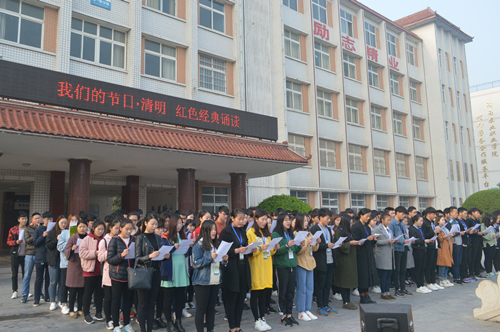 源远流长的红色经典文化,是历史长河中永久的瑰宝,激励着一代又一代中华儿女的豪情和斗志。4月1日上午,在国旗台前,二百余名学生代表一起重温了“红色经典”:《囚歌》、《赤潮曲》、《把牢底坐穿》等经典作品,一首集体诵读的《腾飞吧!祖国》把活动引向了高潮,学生们充分感受到了诵读经典的魅力,与红色经典亲近,重温革命精神,用最优美的诗篇尽情展现我们的爱国热情。