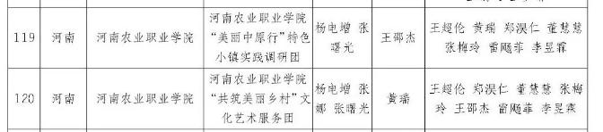 10月24日,河南省直团工委2018年省直大中专学生暑期“三下乡”社会实践活动表彰文件出台,赵杨、杨电增、张娜、张曙光、薛丽丰等6位老师获得优秀指导老师,王亚龙、董慧慧等13名同学获得先进个人。11月16日,由团中央学校部、中国青年报社、人民网举办的2018年全国大中专学生志愿者暑期“三下乡”社会实践“千校千项”评选中,“共筑美丽乡村”文化艺术服务团获评最具影响力好项目。