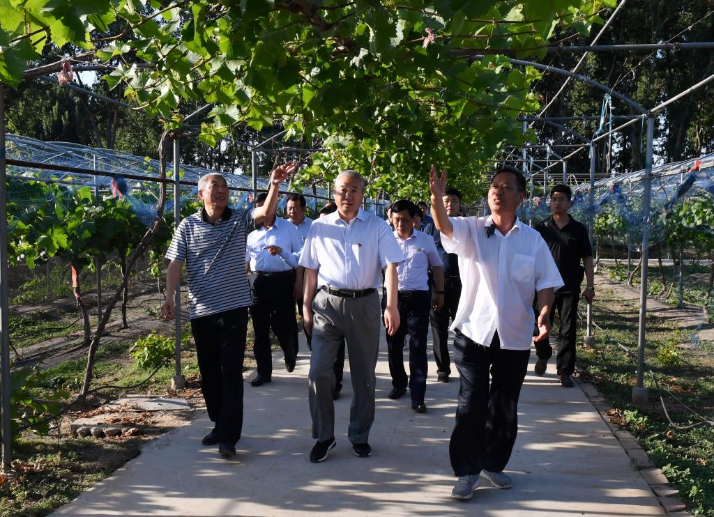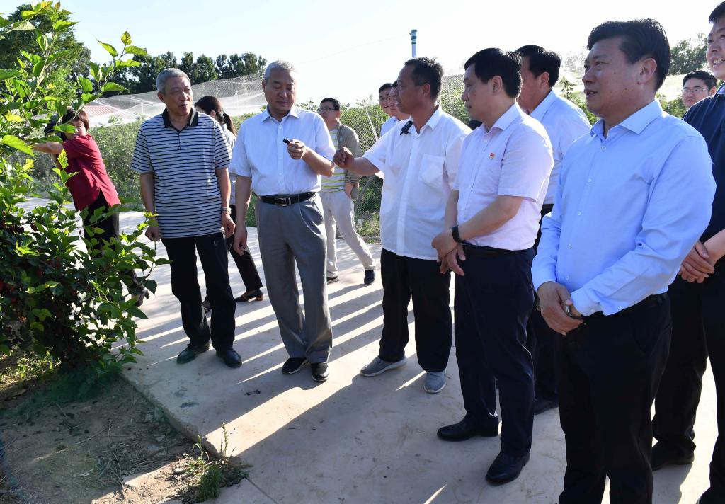 伴随着科技园工作人员的讲解,大家参观了日光温室,查看了葡萄园、苹果园、桃园、梨园和桑葚区、樱桃区的种植情况,大田作物试验区里高矮不一不同品种的小麦。