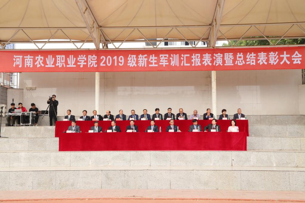 9月26日上午,河南农业职业学院2019级新生汇报表演暨总结表彰大会在体育场举行。校领导刘源、赵麦成、杨现钦、王文锋、窦瑞木、张献奇、武国兆、陈月英同志出席大会。出席本次大会的还有学校相关职能部门、各二级学院负责人以及学校培养的首批72名学生教官。党委办公室主任刘荣宁主持大会。