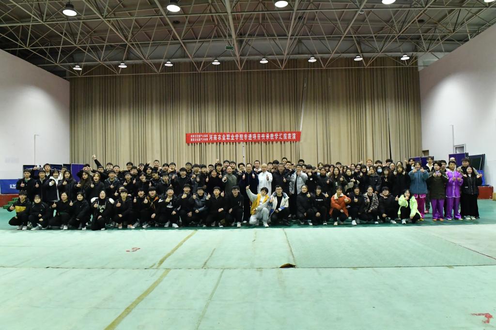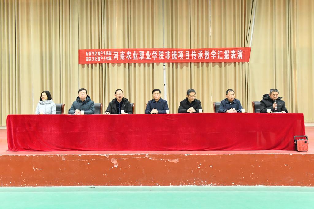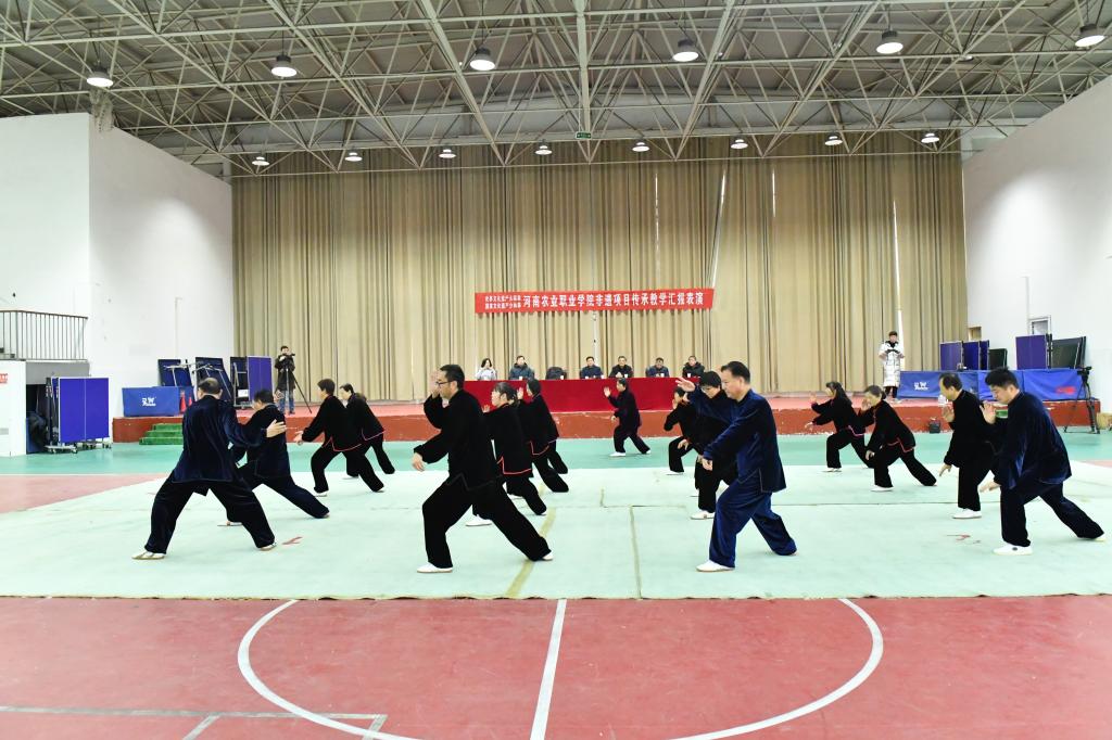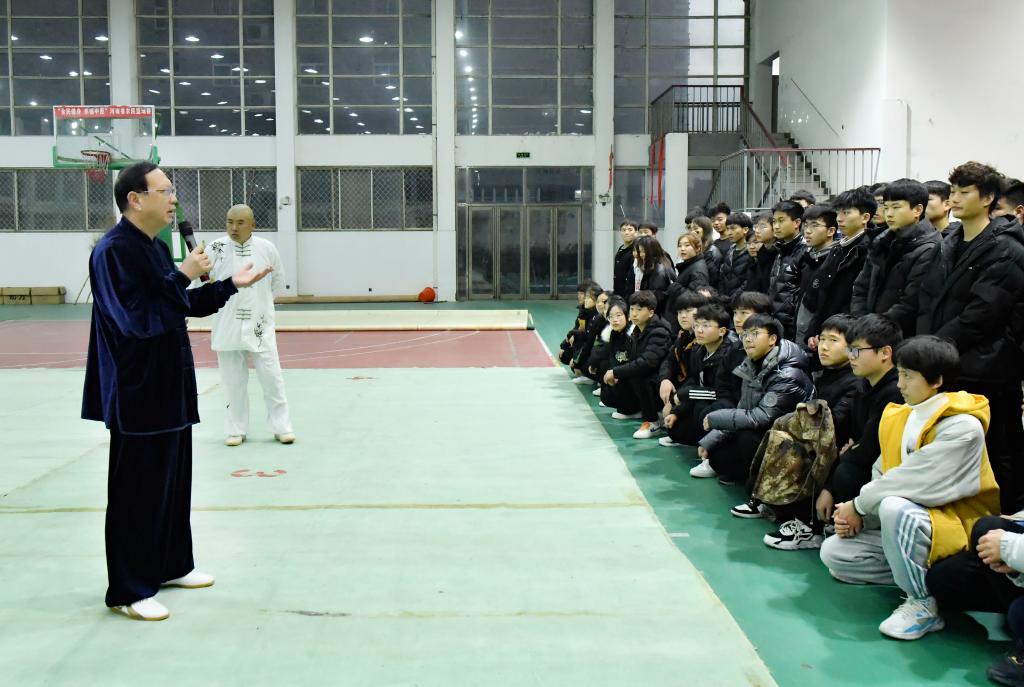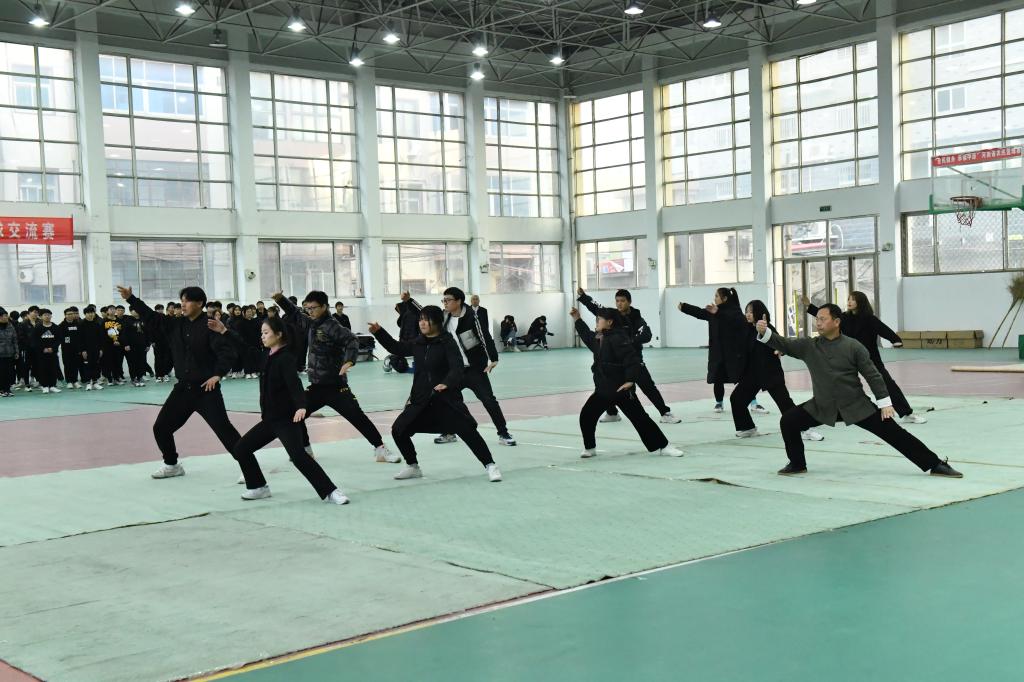 12月31日,体育教学部遴选非遗项目太极拳和少林拳传承班学生、武术队员和传承老师在学校体育馆进行汇报表演,检验学生学习太极拳和少林拳的教学效果。学校校长刘源,校领导赵麦成、杨现钦、窦瑞木、张献奇,地方合作处处长张翠翠出席大会,并现场观摩了教学汇报表演。汇报演出由体育教学部主任吴法旺主持。