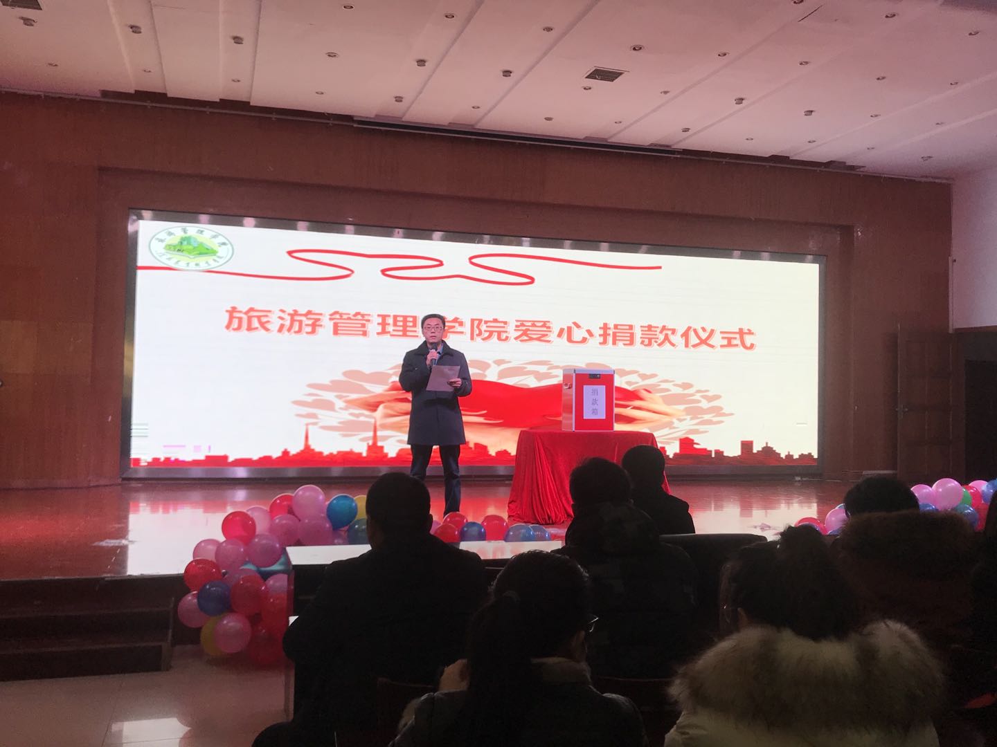 1月14日,我校“2019级商务英语专业刘梦圆同学募集善款”交接仪式在一教大厅举行。学校副校长刘荣宁代表学校将善款交给了刘梦圆同学的家人,学生处负责人、旅游管理学院全体领导班子及商务英语19-3班班主任参加交接仪式。