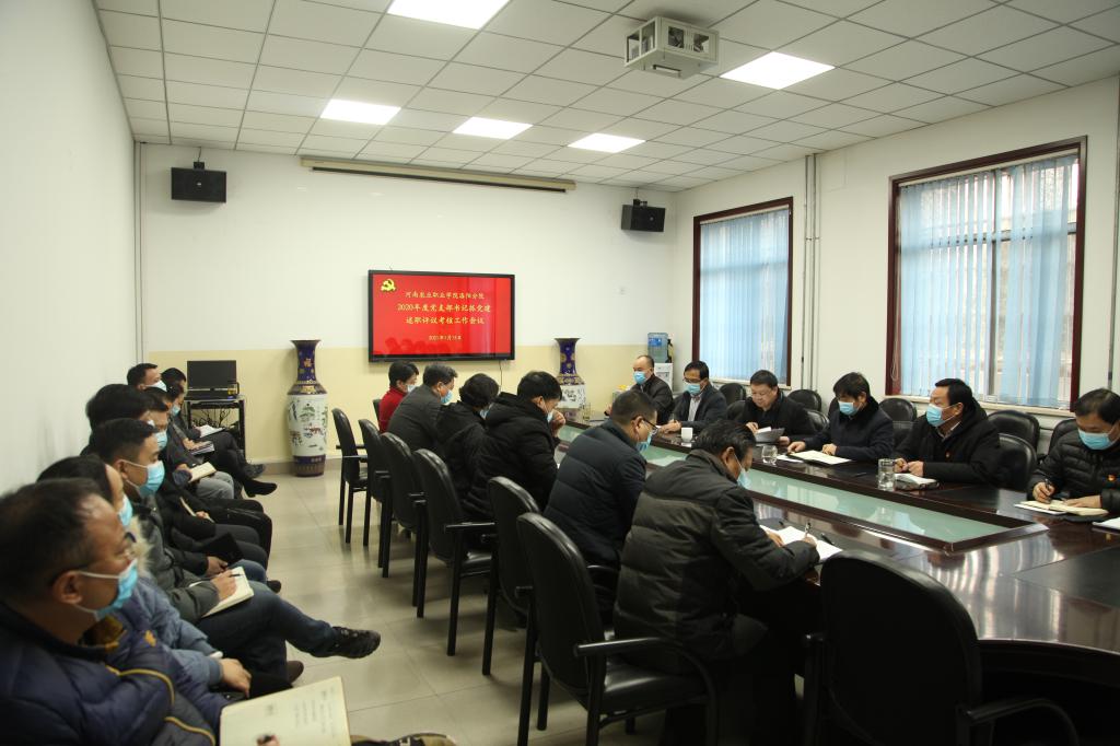 1月15日下午,洛阳分院在教学楼一楼大会议室召开2020年度党支部书记抓党建述职评议考核工作会议。分院党委班子成员和各支部委员参加会议。会议由分院副院长、党委副书记孙新政主持。