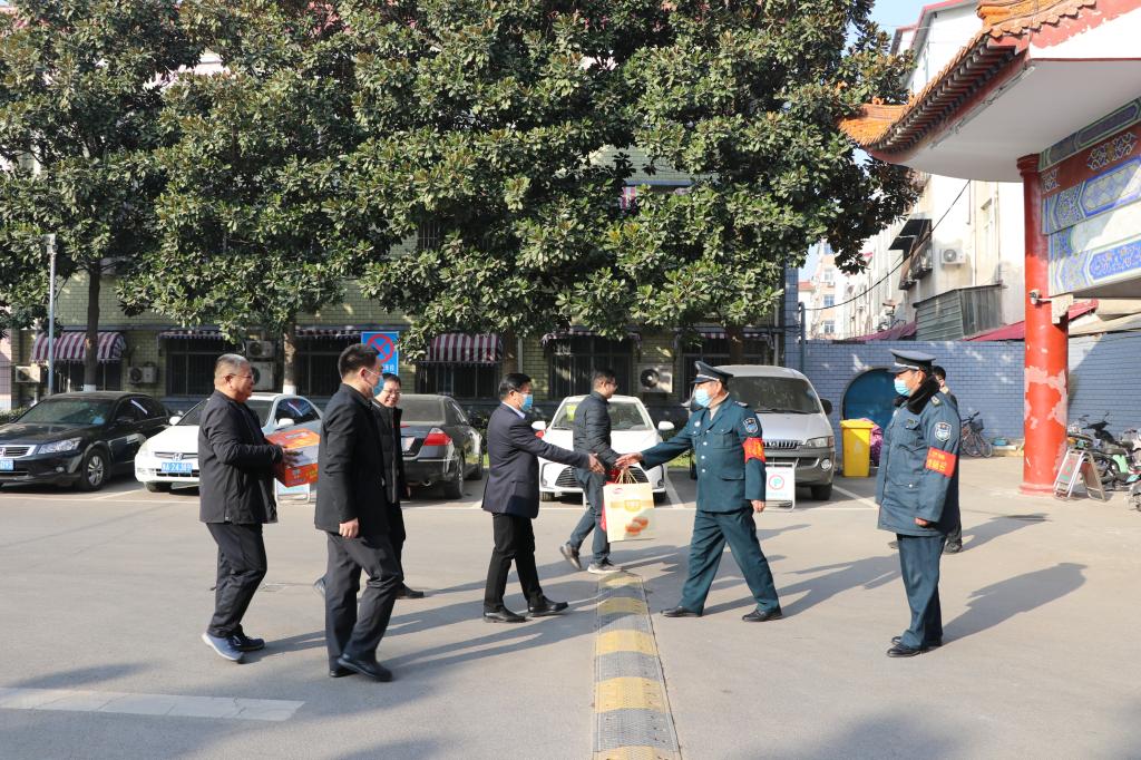 刘源一行先后到学校大门值班室、行政楼、监控室、锅炉房、新校区建设指挥部、金阳光校区值班室等处走访慰问。每到一处,校领导与值班人员亲切握手,代表学校向值班人员送上新年祝福和慰问品。