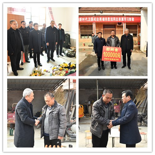 2月26日下午,校党委书记陈建军、校长刘源、副校长刘荣宁以及党委宣传部、党委学工部、武装部、团委、机电工程学院等相关部门负责同志来到新乡市延津县肖思远烈士家中看望慰问烈士家属,向他们表达学校的关怀。