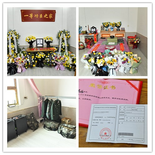 在肖思远烈士家中,校领导亲切握住肖思远父亲肖胜松的手,送上十万元慰问金和鲜花,并一同前往肖思远遗照前,悼念烈士,表达敬意。