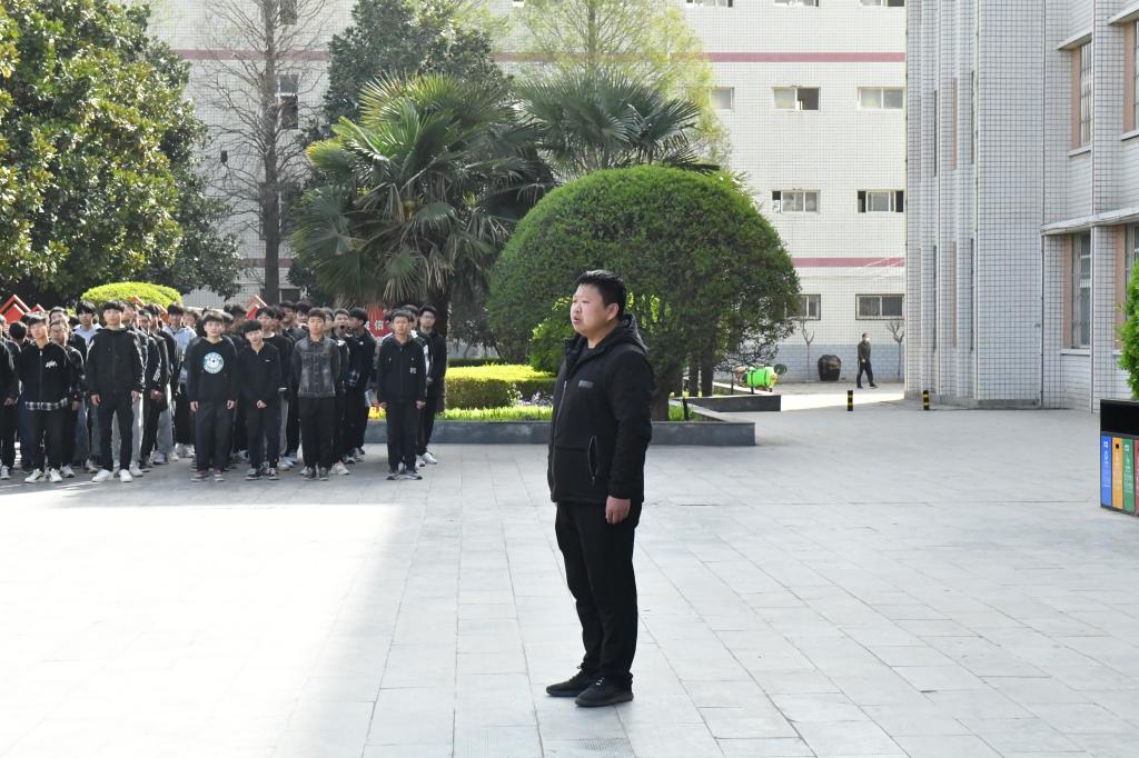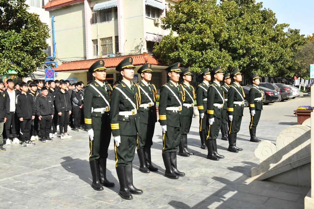 为弘扬英烈精神,致敬戍边英雄肖思远,3月23日上午学校举行升旗仪式。机电工程学院19级、20级汽修专业全体学生参加升旗仪式。