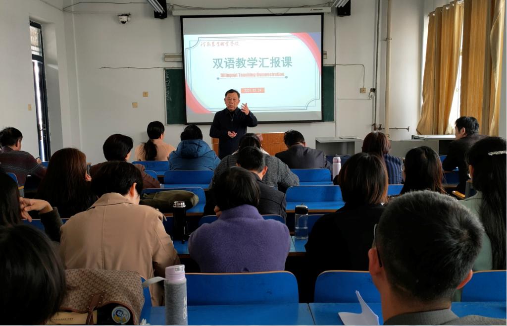 根据学校国际交流和双高建设工作需要,科研外事处于2021年1月开展了专业教师双语授课培训工作。为巩固第一阶段培训成果,加快提高专业教师双语授课能力,3月24日下午,科研外事处在3409教室组织此前参加培训的20名教师开展了一场“双语教学汇报课”,汇报课由科研外事处处长高素玲主持。副校长窦瑞木出席汇报课,国家双高、省双高建设群负责人以及旅游管理学院和人文教育学院英语专业骨干以评委身份参加了汇报课。