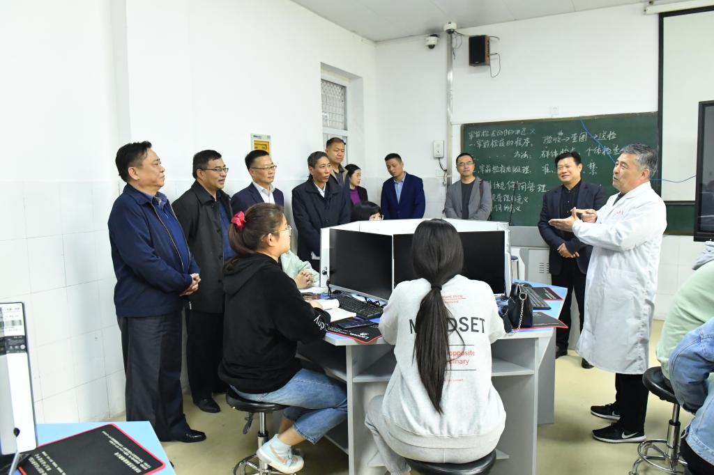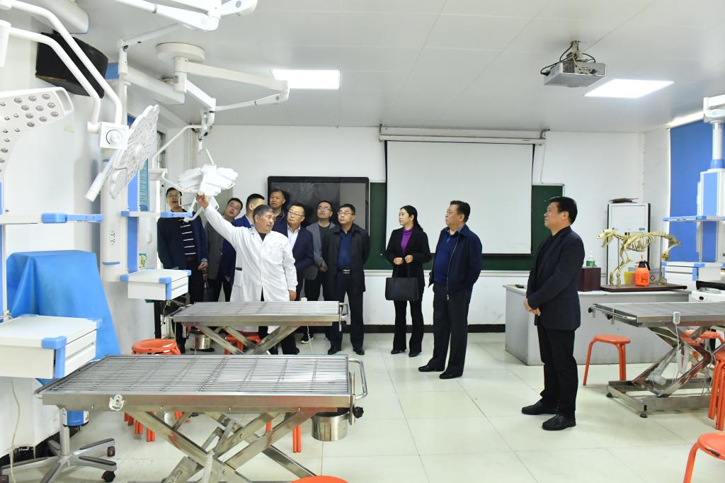 考察团观看了学校宣传片,参观了学校牧业工程学院实训室和科技园等。