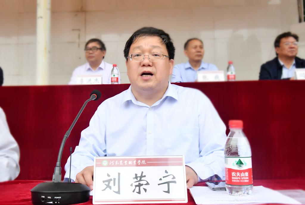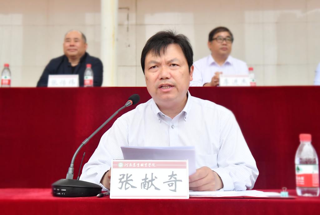 副校长张献奇宣读表彰文件《河南农业职业学院关于表彰2020级学生军训优秀学生教官和优秀学员的决定》。