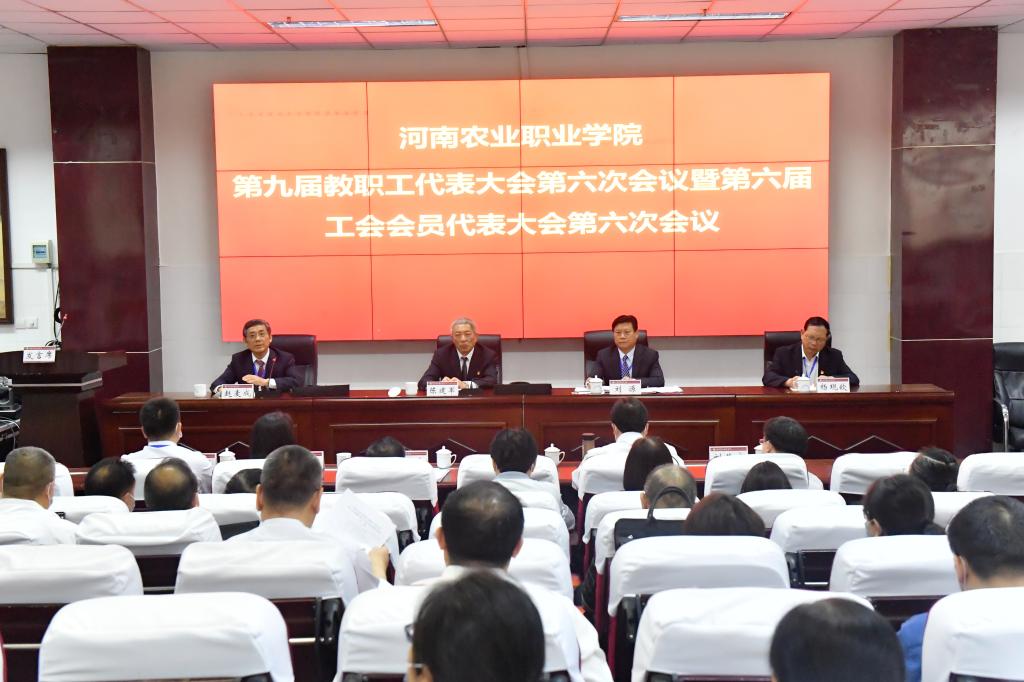 5月15日上午9时,河南农业职业学院第九届教职工代表大会暨第六届工会会员代表大会第六次会议在4104报告厅开幕。学校领导班子成员出席会议。与会代表应到137人,实到128人。开幕式由学校党委副书记、工会主席赵麦成主持。