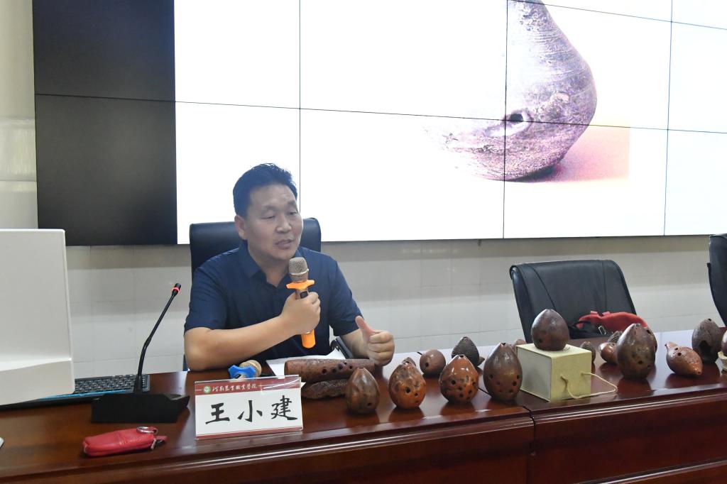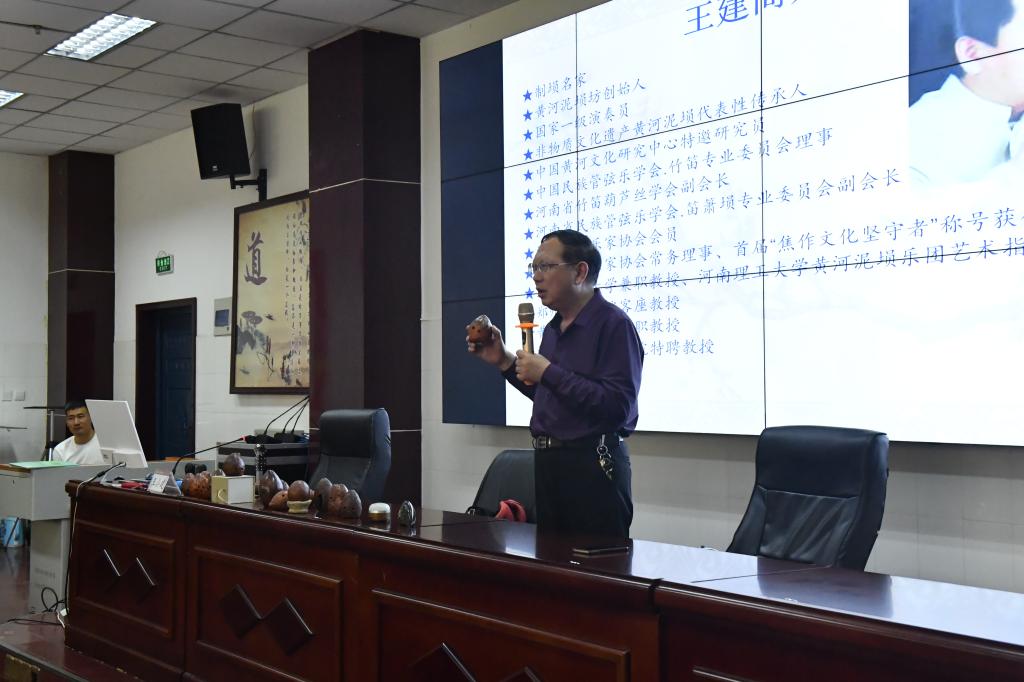 讲座伊始,杨现钦书记首先对黄河泥埙文化及非遗传承人王建老师做了全面介绍,王建老师是非物质文化遗产黄河泥埙代表性传承人,制埙名家,黄河泥埙坊创始人,国家一级演奏员,中国黄河文化研究中心特邀研究员。