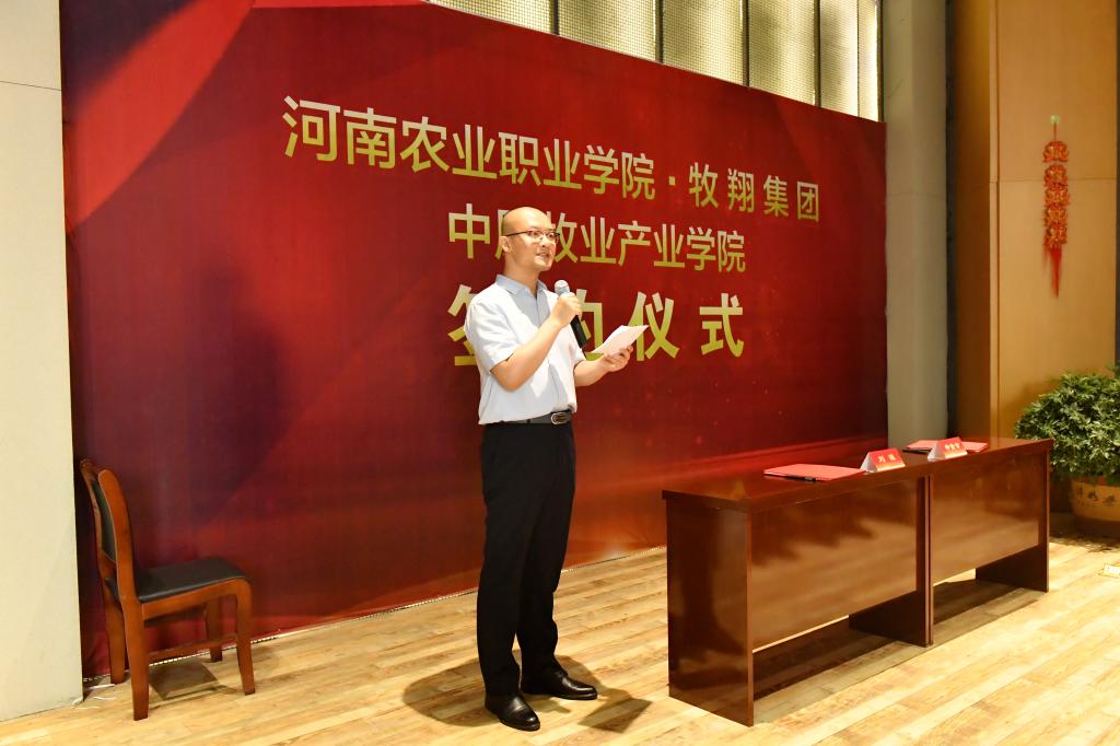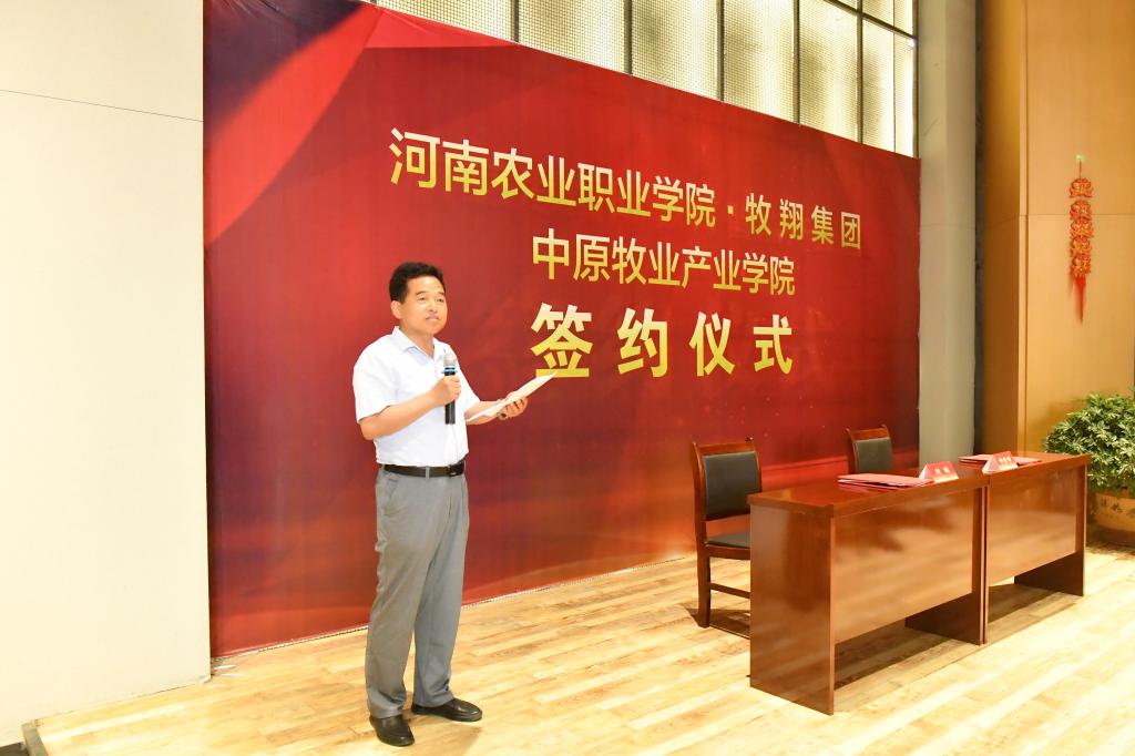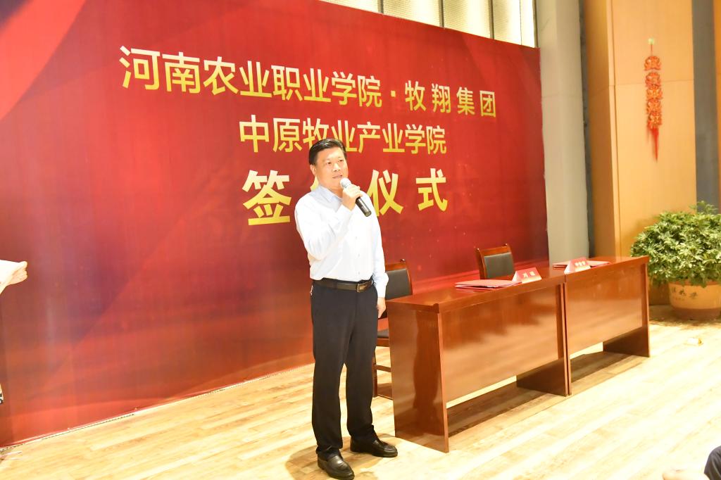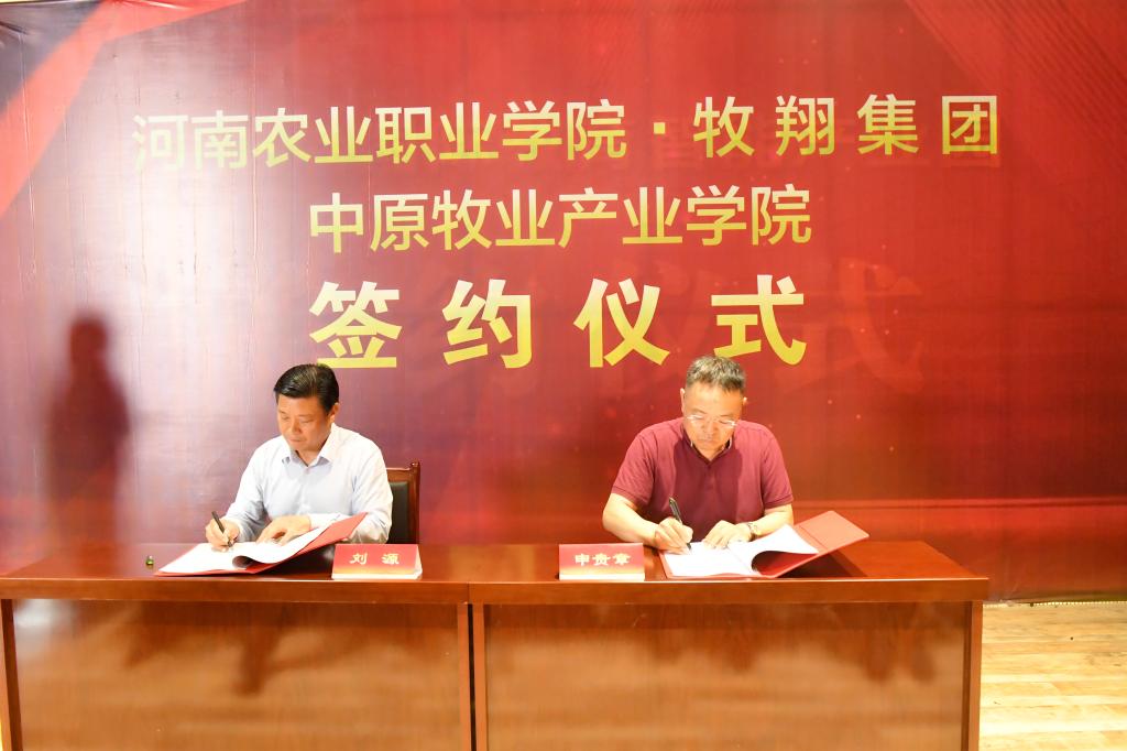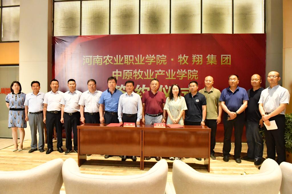 6月1日,河南农业职业学院中原牧业产业学院签约暨揭牌仪式在郑州航空港经济综合试验区启德飞翔教育产业园顺利举行。