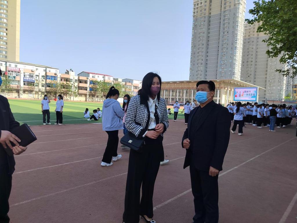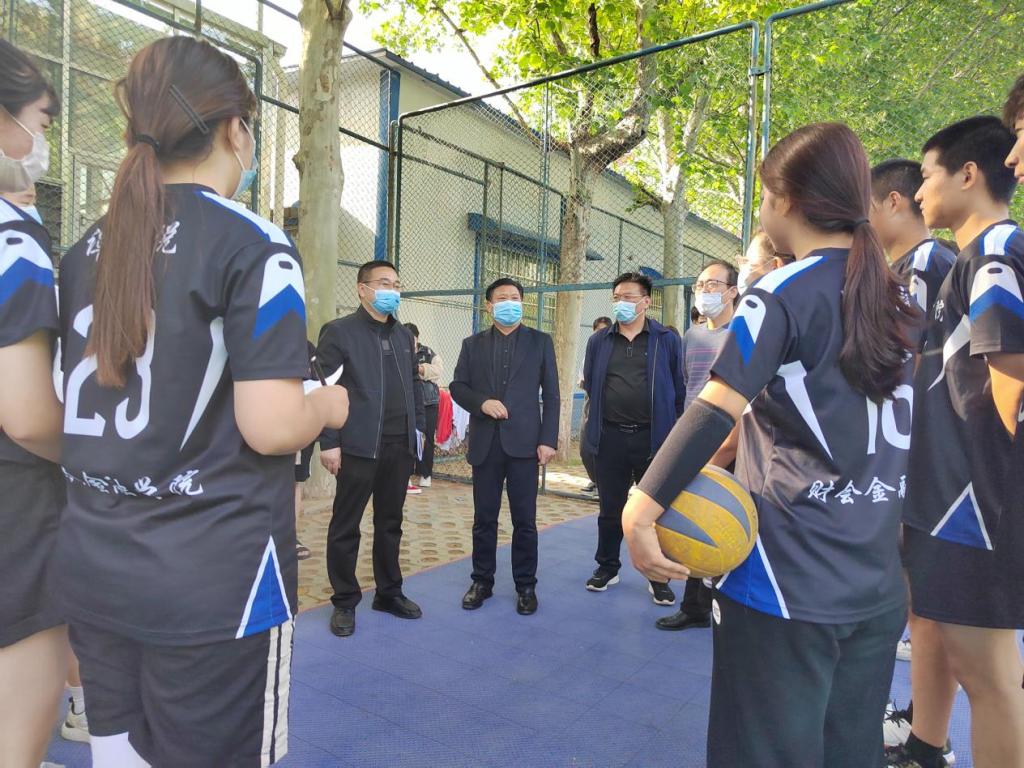 在排球场,刘源把参加排球比赛的队员聚到一起,亲自为参赛队员加油鼓劲,校长的亲切鼓励,让每一名参赛队员信心倍增。