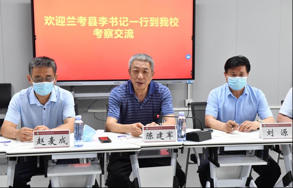 陈建军书记指出焦裕禄精神深深影响着我们几代人,是我们永远取之不尽、用之不竭的精神财富。他结合学院发展概况、师资配置、办学方向、招生层次、学科发展及特色优势等方面,将充分发挥智力、人才等优势,为兰考县实施乡村振兴战略顶层设计出谋划策,与兰考县开展更大范围、更深层次的合作,为助推乡村振兴和河南现代农业强省建设作出新的更大贡献。