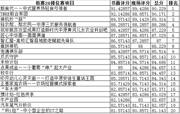 排位赛经过4个小时的激烈角逐,各项目路演选手通过PPT精彩展示,与评委的激烈争辩,演绎创业引领。最终食品工程学院选送的《新食代—中式营养热轻食引领者》等4个项目获得一等奖,信息工程学院选送的《筑牢脱贫攻坚成果,打造新时代中原黄河儿女农业科创吧》等6个项目获得二等奖,牧业工程学院选送的《禾牧计划》等10个项目获得三等奖。