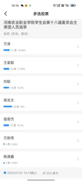 会议表决通过了《第十七届学生会工作报告》和《河南农业职业学院学生会章程》,通过无记名差额选举的方式选举出方波、王星懿、刘聪、周志文、寇苗杰等5位同学为第十八届学生委员会主席团成员。在完成了各项议程后,第十八次学生代表大会圆满结束。