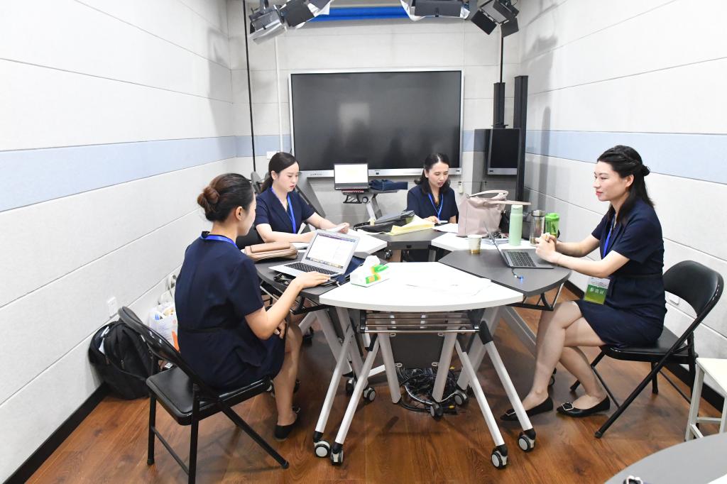 来自全省高职院校的73个参赛作品入围了现场决赛,各高职院校职教精英齐聚我院,展开激烈的角逐。在决赛预备会上,各参赛队代表抽签决定决赛场次,决赛当天,现场抽签确定当场次比赛顺序。决赛在学院第三教学楼举行,现场设有候赛室、备赛室、比赛室。本次比赛设有现场直播,比赛带队人员及当场次不参赛人员可在直播室观看现场比赛情况。