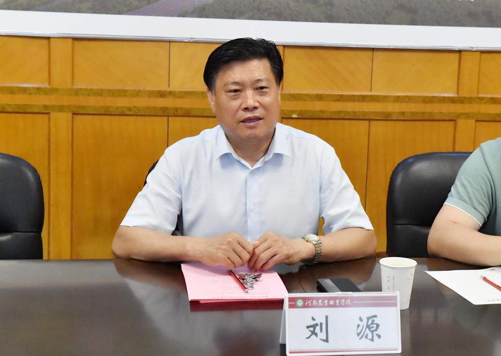 刘源对赵宪志一行的到来表示欢迎,介绍了学院“双高计划”建设情况、新校区建设情况、各二级学院专业建设情况和近年来学院取得的主要成绩。