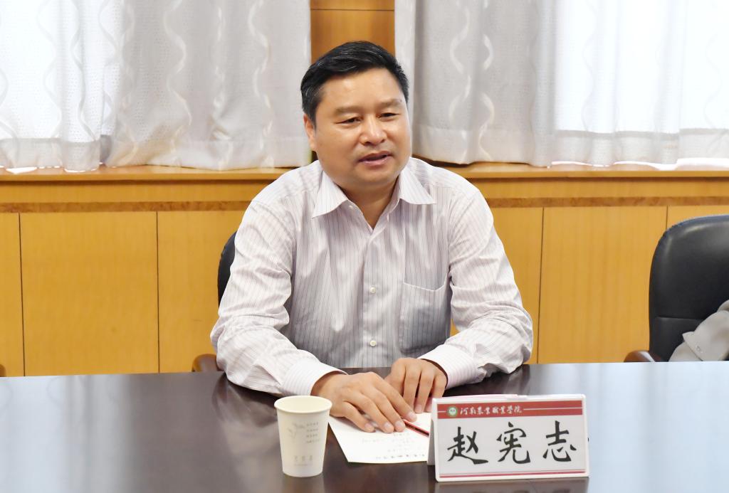赵宪志对我院近年来的发展成绩表示肯定,并介绍了此行的调研目标和主要任务。赵宪志表示,职业教育发展大有可为,农业职业教育要以人民为中心,解决“三农”问题,大力培养新型职业农民,为国家乡村振兴建设贡献力量。