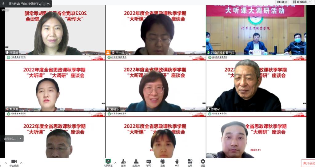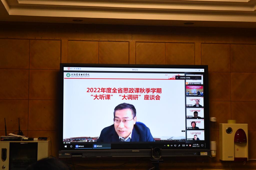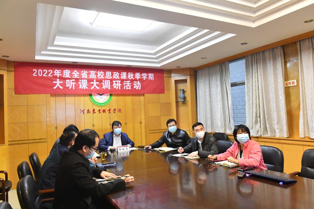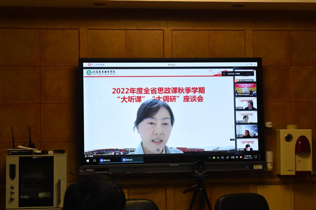 以新乡医学院马克思主义学院院长戎华刚教授为组长的全省高校思想政治理论课“大听课、大调研”活动第十四调研组对我院思政课建设开展“云指导”,2022年11月18日上午,调研组专家通过钉钉教学平台开展随机听课,21日下午,调研组专家与我院领导、思想政治教学部教师通过腾讯会议举行座谈会。