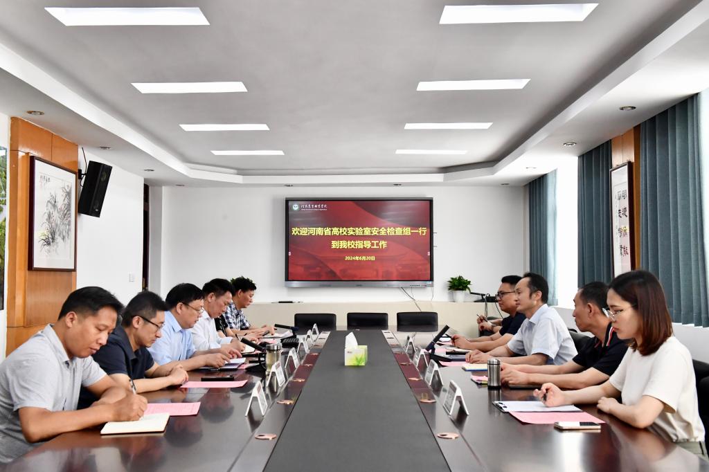 6月20日上午,省教育厅高校实验室安全现场检查专家组王志宏一行5人,到我院开展2024年度高校实验室安全现场检查工作。实验室安全现场检查汇报会在学院行政楼三楼会议室举行,院长刘荣宁、副院长周士锋出席会议。教务处、保卫处等相关部门负责人参加会议。会议由院长办公室主任蒋鹏主持。
