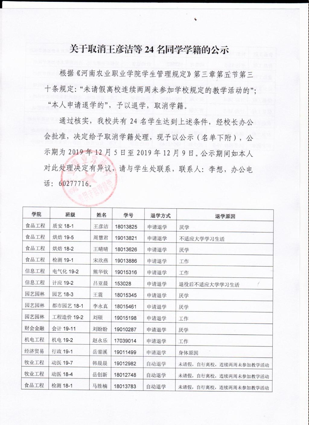关于取消王彦洁等24名同学学籍的公示