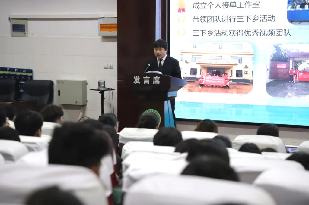胡庆国同学以“展人生多姿多彩,唯奋斗不负韶华”为主题讲述了自身在校期间的成长历程,他以制定目标到实现目标为基准,从如何从迷茫走向成功、如何在高校中提升自我、如何提升自己的综合素质和对专升现状的思考四个方面分享他的成功秘诀。他以每一阶段的目标作为自己前行方向的动力,他思路清晰,计划周密,有条理的去学习实施,最终取得各项优异成绩。他相信,只要同学们保持着一颗坚定的信念和勇往直前的决心,就一定能够战胜困难,实现自己的人生价值。