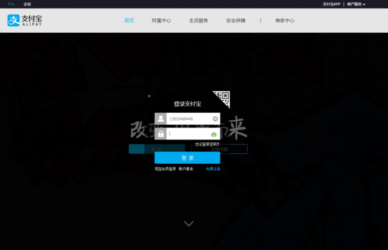 (1)用个人支付宝还款帐号或其它任意支付宝帐号登录支付宝网站