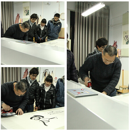 王良绪老师在为学生讲授书画装裱的操作程序