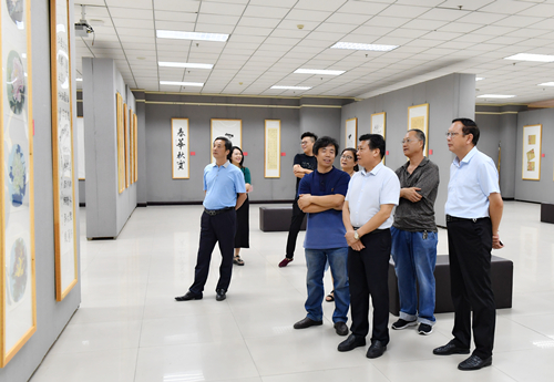2018年9月10日下午,河南农业职业学院教师书画展在学校图书馆五楼书画展厅开展。学校党委副书记、校长刘源,党委副书记、工会主席赵麦成,党委副书记杨现钦,副校长张献奇、副校长武国兆对展出作品进行了观摩、点评。