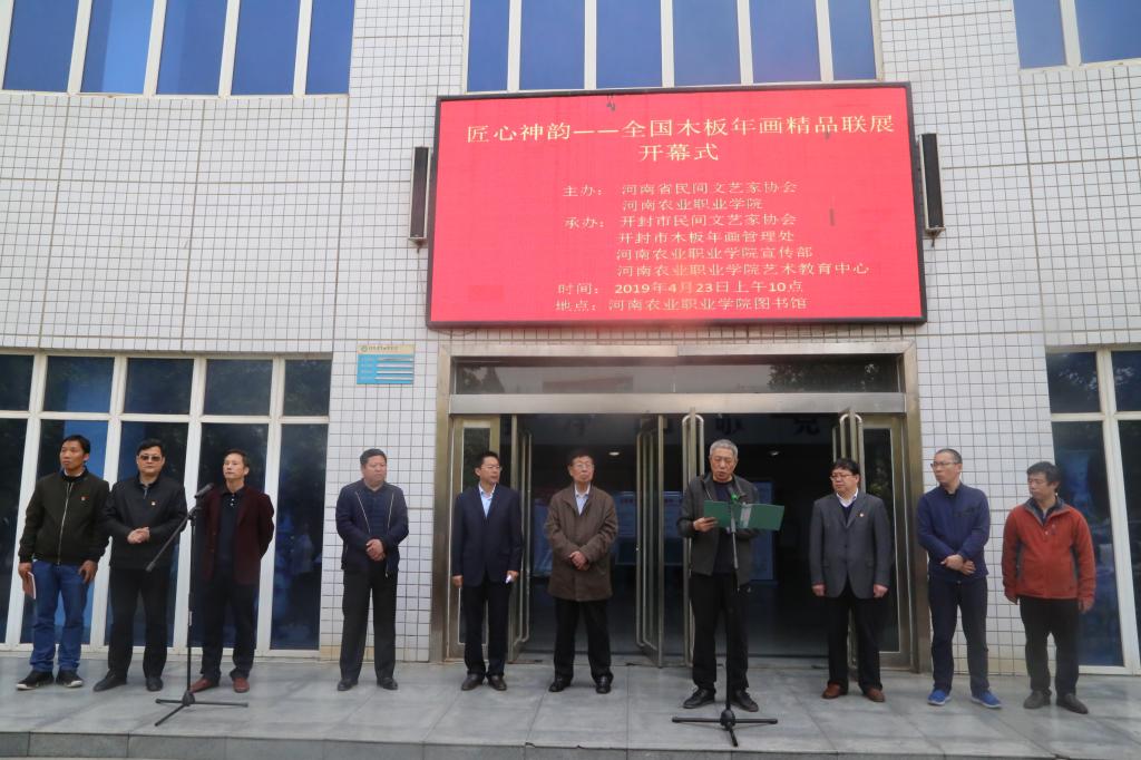 2019年4月23日上午十点,全国木版年画联展在我校开幕。学校领导陈建军、武国兆以及党委宣传部、艺术中心、图书馆、团委等部门相关负责人和师生代表出席了开幕式。 原中国民间文艺家协会副主席、河南省文艺家协会名誉主席夏挽群宣布联展开幕。