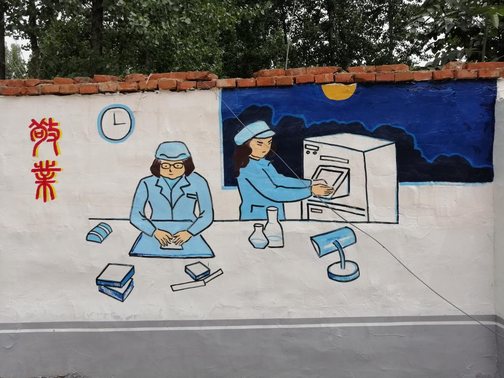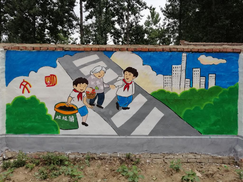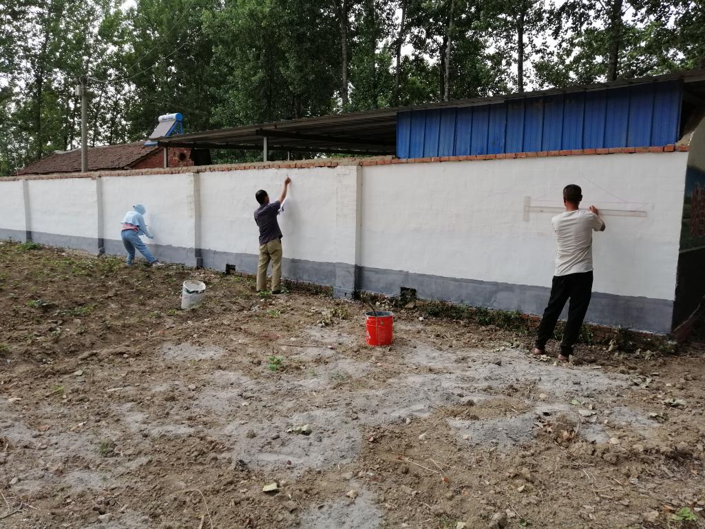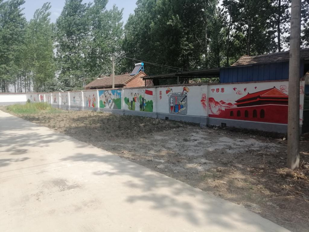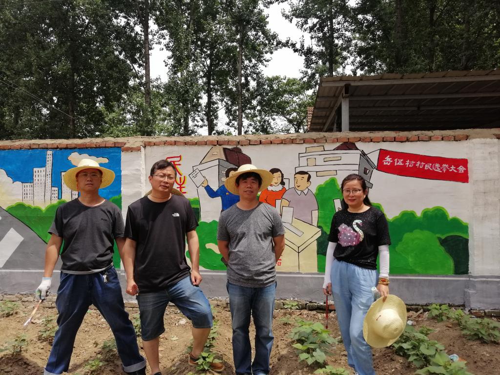 随着我校“校地结对帮扶”工作的进一步深入,炎炎夏日中,我校艺术教育中心老师来到校地结对帮扶合作村——驻马店市正阳县熊寨镇岳伍村,落实村部文化墙的绘制工作。在艺术教育中心王铁刚副主任的带领下,书法美术教研室老师总体规划,决定用装饰绘画的形式把社会主义核心价值观简洁、鲜明地表现在文化墙上。6月8-11日,顶着烈日,冒着酷暑高温,经过近一周的努力和创作,至6月11日上午,一幅幅活灵活现的画作呈现在我们眼前,以活泼、形象的方式培育社会主义核心价值观,并引领带动群众心向党、听党话、感党恩、跟党走,在党的带领下,打好脱贫攻坚战。