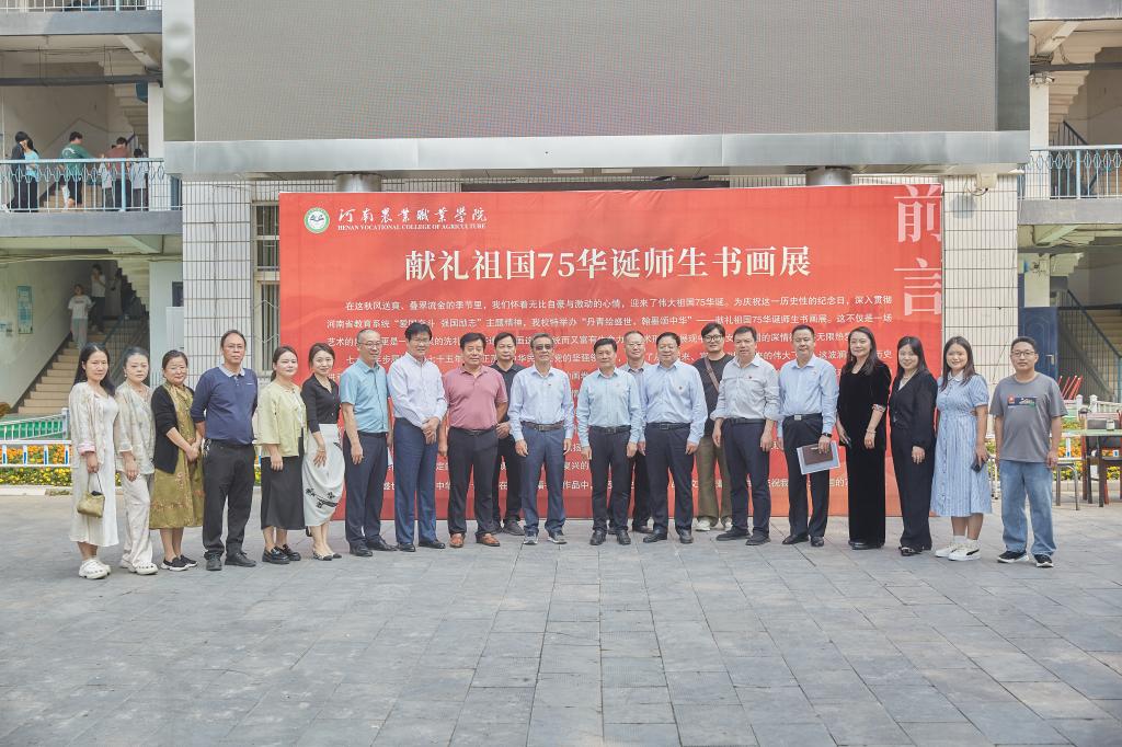 2024年9月27日上午,为庆祝祖国75华诞,河南农业职业学院一场精彩纷呈的师生书画展在第一教学楼后小广场隆重举行。本次书画展汇聚了师生们精心创作的书画作品共70余幅,以笔墨丹青向伟大祖国献上最诚挚的祝福。