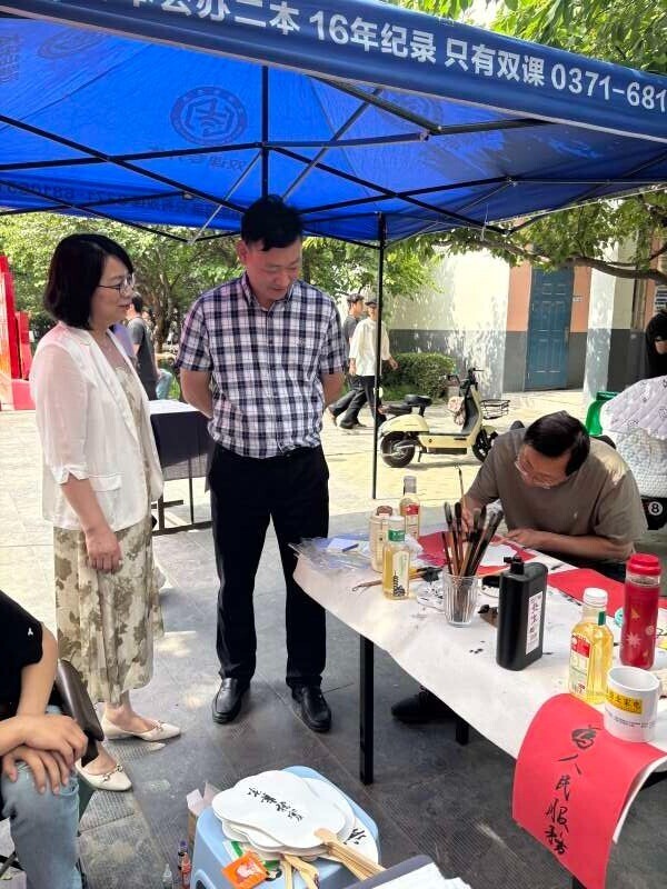 学校校长刘荣宁、副院长高延玲、门保全等领导亲临展示现场参观指导。刘荣宁校长对公共艺术学院此次非遗技艺展示给予了高度评价,他表示,非遗进校园活动意义深远,不仅丰富了校园文化生活,还为同学们打开了一扇了解传统文化的窗口,让大家近距离感受非遗技艺的魅力,培养学生的文化自信和民族自豪感,对传承和弘扬中华优秀传统文化起到了积极的推动作用。