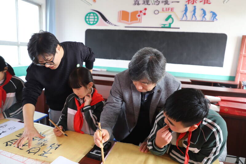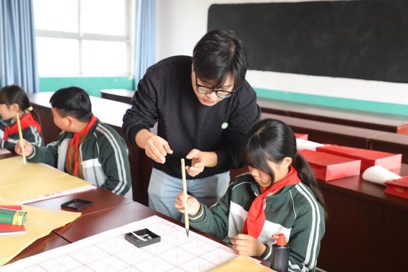 在书法教学互动环节,公共艺术学院的王铁刚老师和赵洋老师从传统毛笔书法的基本知识入手,向同学们示范了正确的握笔、运笔技巧,重点指导同学们书写“自强不息”四个字。大学生志愿者们耐心协助,逐字拆解笔画结构,手把手纠正同学们的书写姿势,鼓励大家以笔为媒,在墨香中感受中华优秀传统文化独特魅力,领悟“自强不息”所蕴含的积极向上奋斗精神。志愿者们还为参与的同学们送上了彩笔、画本等小礼品,鼓励他们保持对生活与艺术的热爱,以积极乐观的心态面对学习和成长。