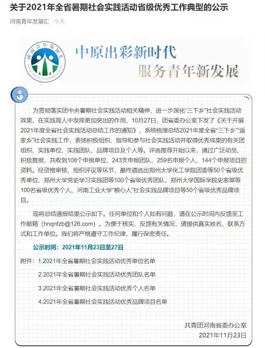 11月23日,共青团河南省委下发通知,公布2021年全省暑期社会实践活动优秀品牌项目名单,园艺园林学院“中原支农‘轻骑兵’” 品牌项目榜上有名。此次优秀品牌项目属于首次设立。