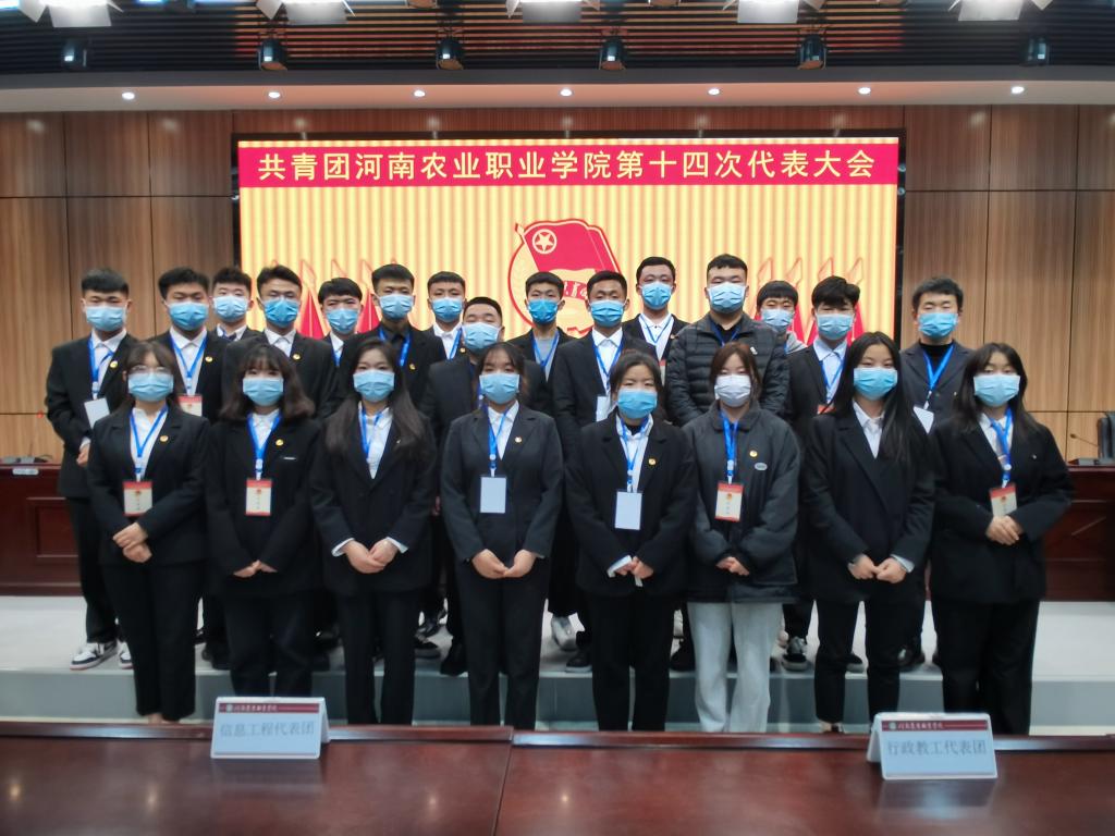 12月24日下午,共青团河南农业职业学院第十四次代表大会在四教4602报告厅隆重召开。我院24名代表在团长薛丽丰的带领下参加大会。