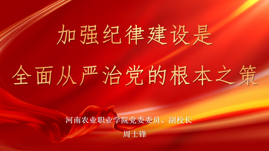 2024年5月16日我们学院邀请了学校副校长周士锋老师为学生们上一堂生动党课。为培养大学生爱国、爱党,保持中华民族优秀传统习俗,促进民族大团结,共同繁荣发展,课堂上周校长从以下六个方面讲述了加强纪律建设是全面从严治党的治本之策:一是严明政治纪律;二是严明组织纪律;三是严明廉洁纪律;四是严明群众纪律;五是严明工作纪律;六是严明生活纪律。