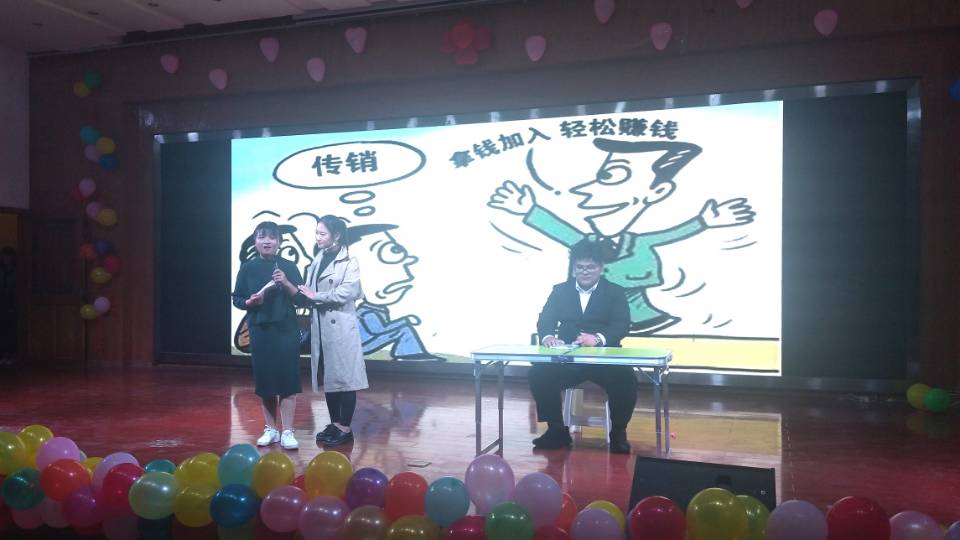 我院经过精心挑选,分别由工程造价18-1班师梦龙,花卉18-1班陈惠娟、王清云,花卉18-2班郝仲超、黄紫鑫,园林18-3班左晓慧、陈梦瑶、贾名扬等组成参赛队参赛。他们通过创作剧本、反复练习,通过精彩的表演,向新时代大学生呈现了新型传销带来的危害,起到警示教育作用。(文/薛丽丰、孙胜伟 图/袁东毅)