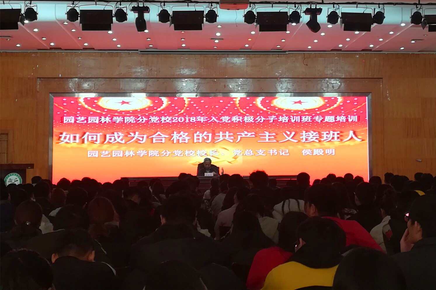 11月24日上午9时,园艺园林学院党总支第28期入党积极分子培训班在学术交流中心大报告厅进行第一次集中培训。邀请学院党总支书记、分党校校长侯殿明同志做报告。